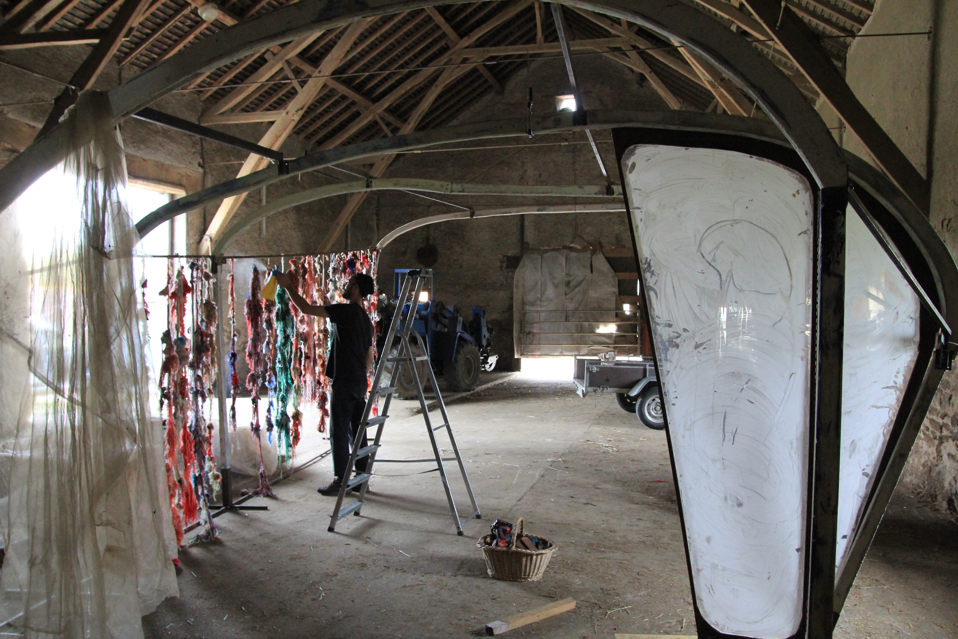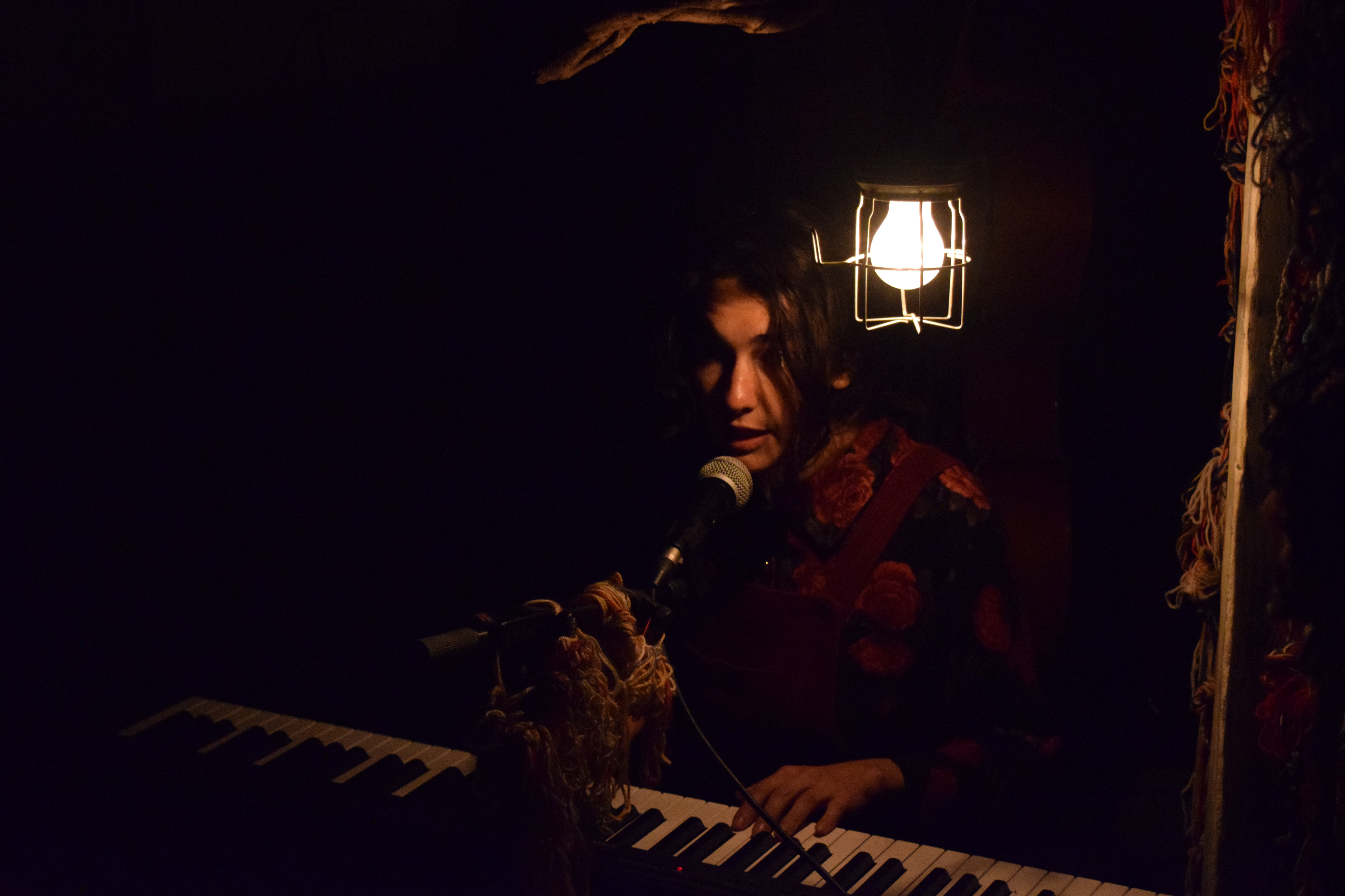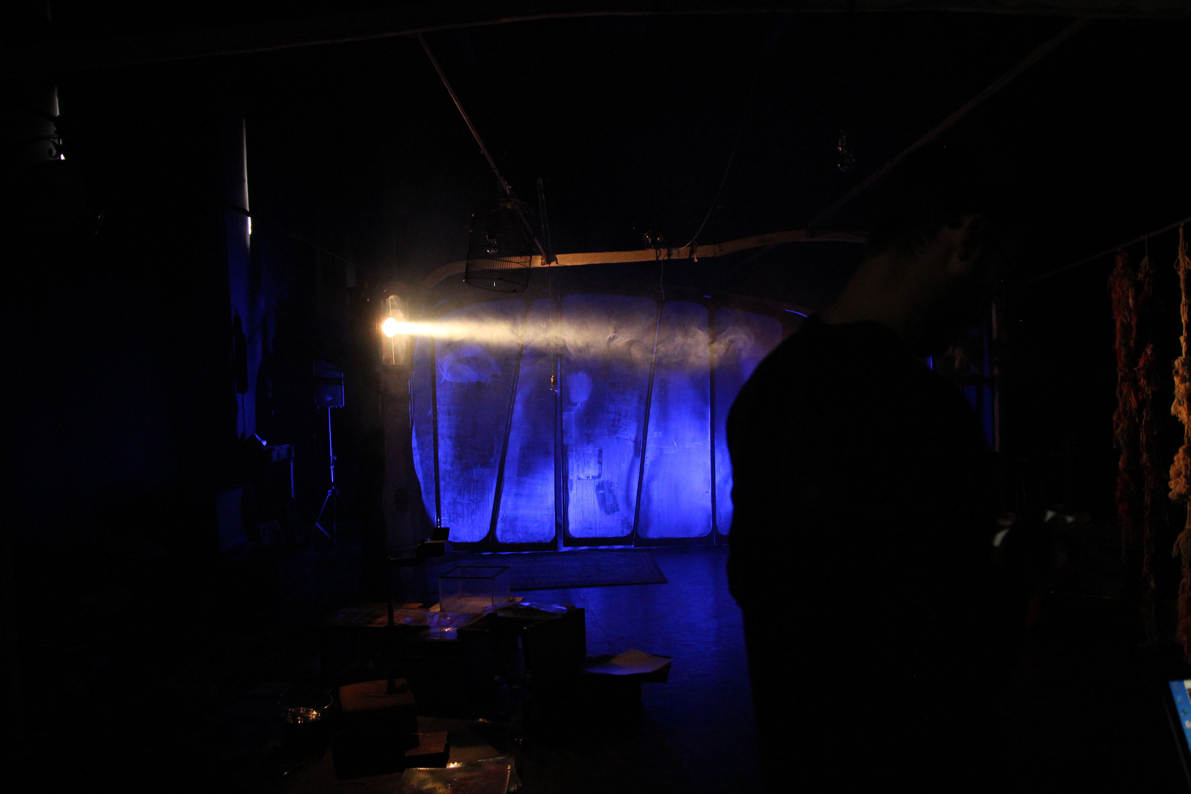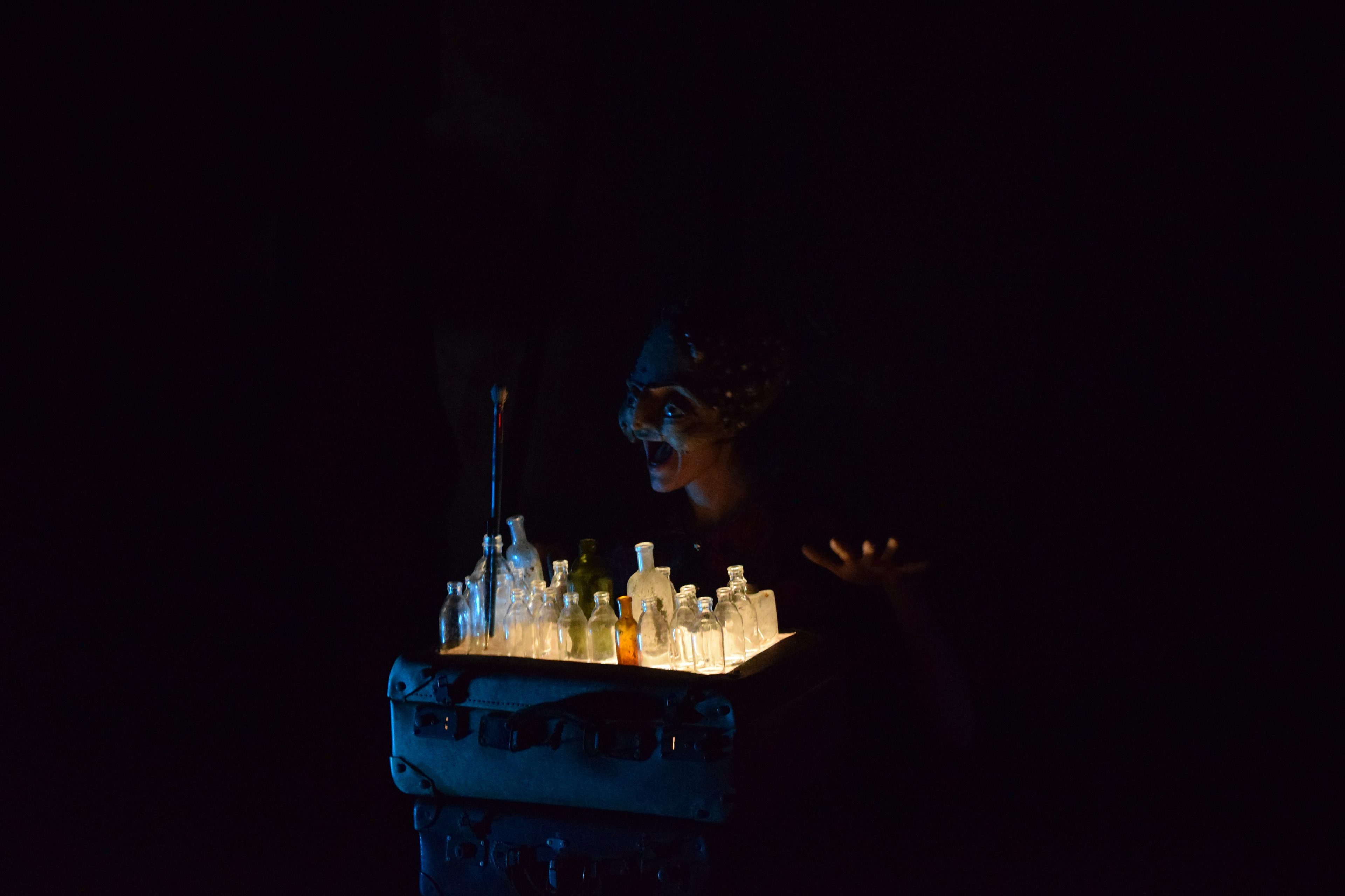 L'espace du spectacle de « Celle qui dit qu’elle a perdu son nom » ressemble autant à une cabane contre laquelle le vent aurait trop soufflé, qu’au squelette d'une baleine biscornue qui nous aurait proposé un abri. Les visiteurs entrent dans ce monde en mouvement, y prennent place. Au-dessus de leurs têtes, des arches tordues s'enchaînent, se rétrécissant légèrement. Un pêcheur sans visage s'articule derrière eux. Une forêt pousse tout à coup et une ville se réveille lentement. Au-delà des fenêtres, des personnages apparaissent puis s’effacent.